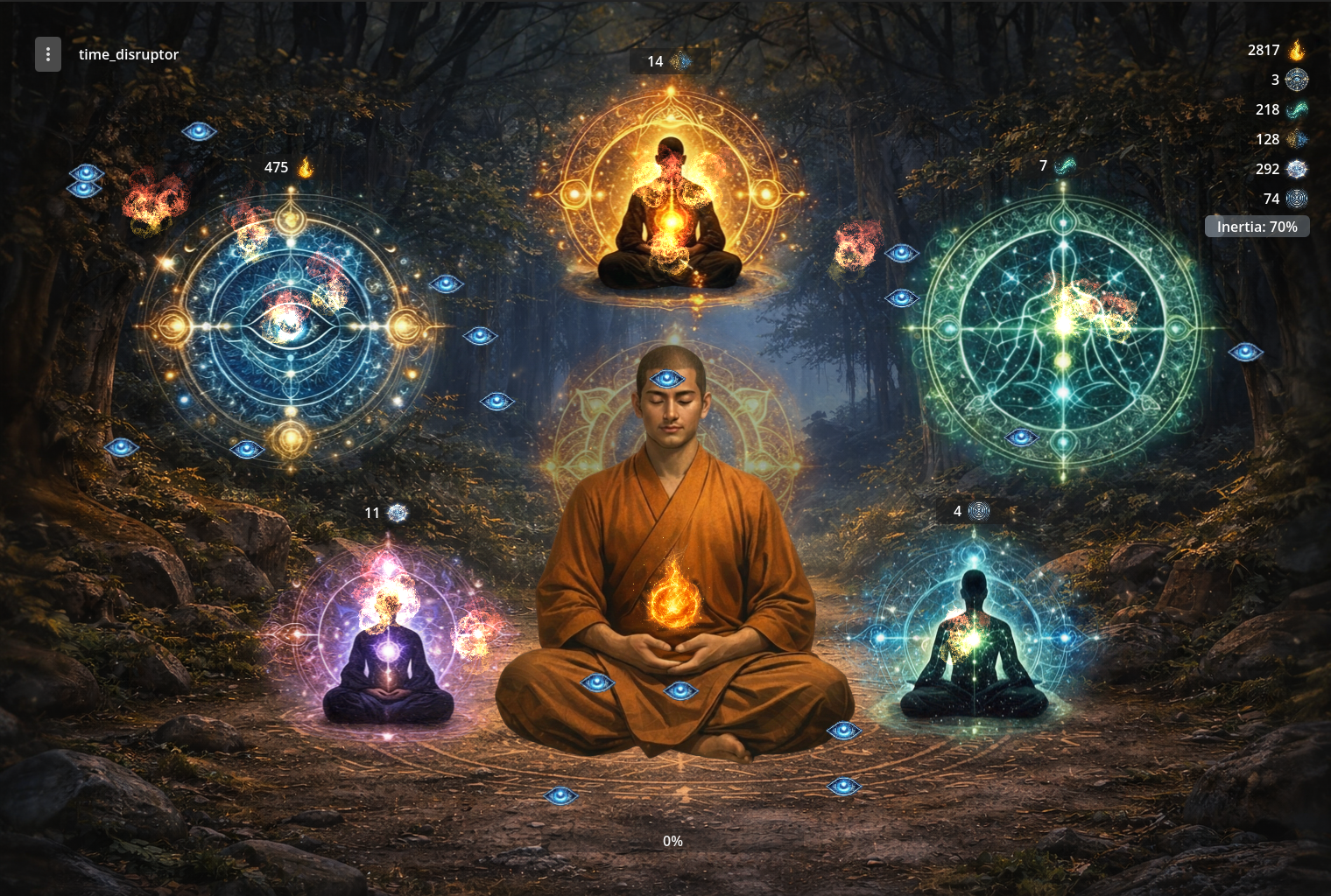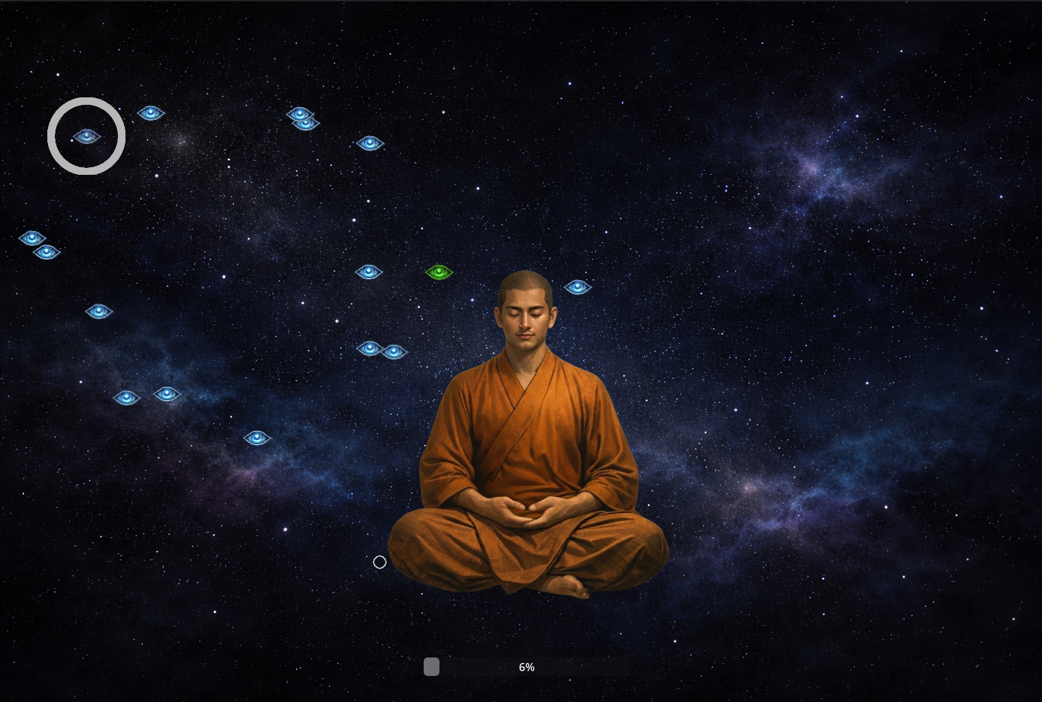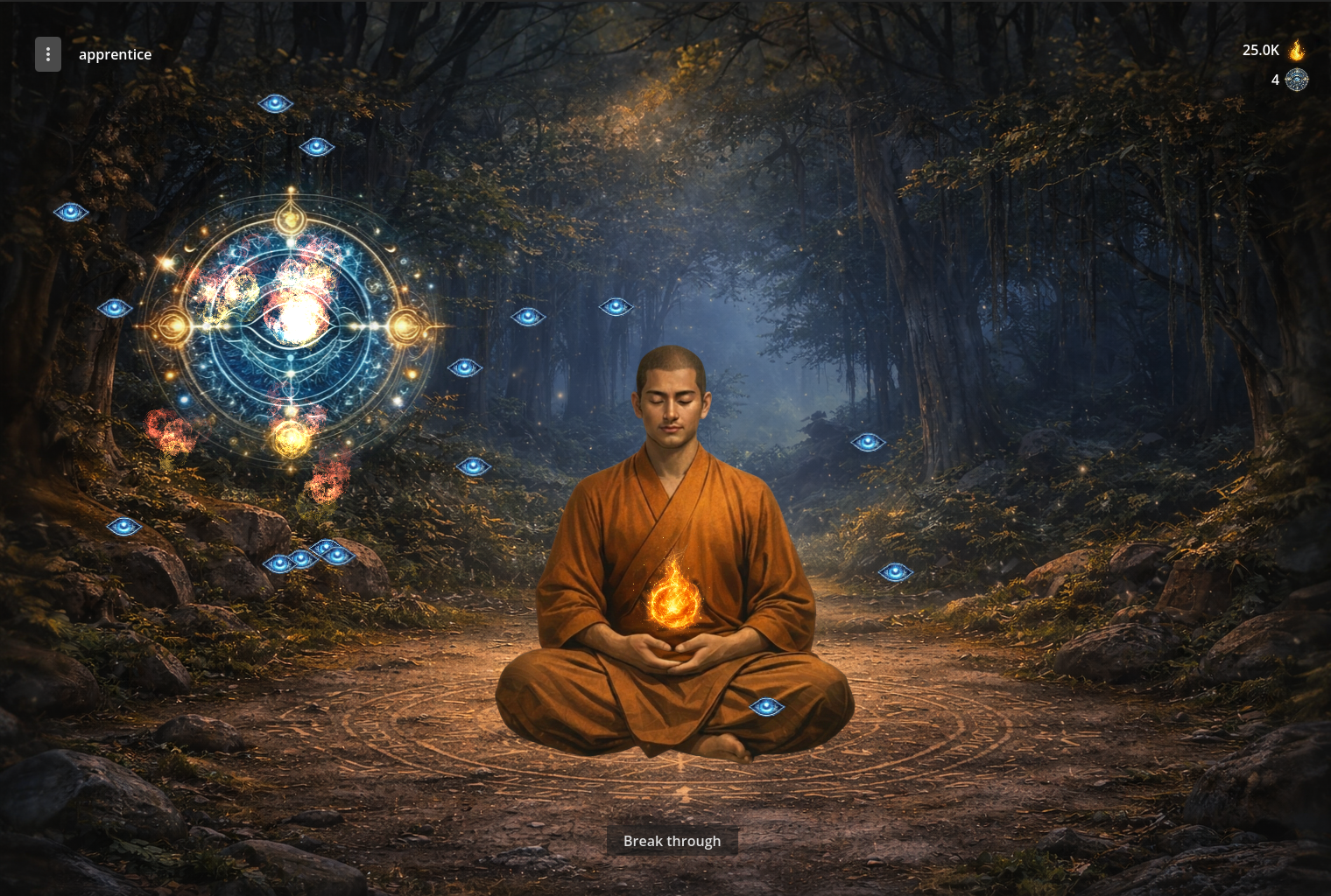 After you gather enough spirit essence, you will be able to "break through" on the next level and open new mandala, but you must beat mini-game - hover enough attention points with a mouse - more than 80%.